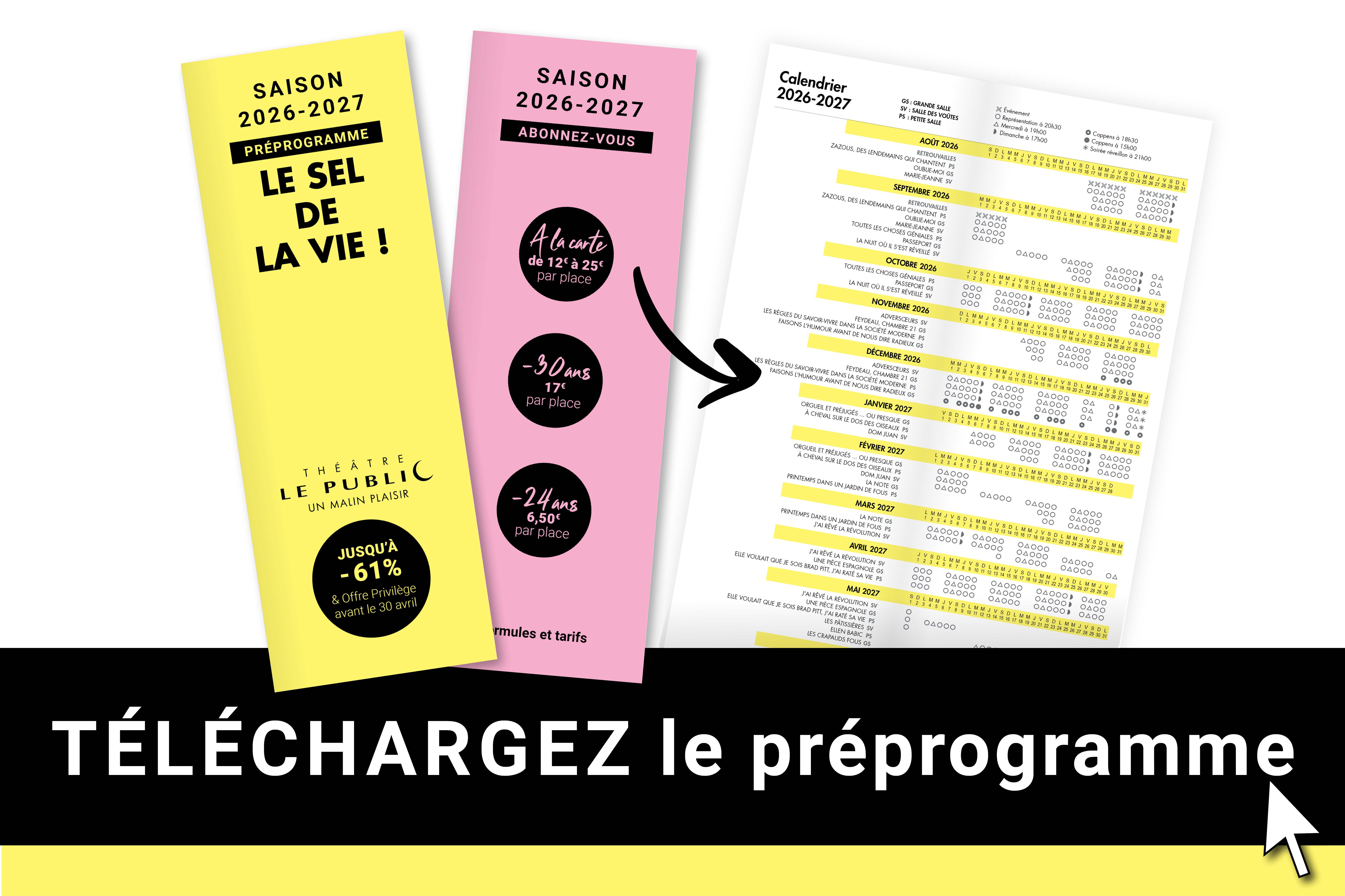 Accédez aux liens directs vers Les 21 spectacles de la saison 2026-2027 Les formules d’abonnements 2026-2027